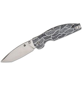 QSP Knives Turtle Punk Liner Lock Folding Knife 3.5" 14C28N Stonewashed Modified Tanto Blade, 3D Milled Black and White G-Mascus Handles - QS158-B1